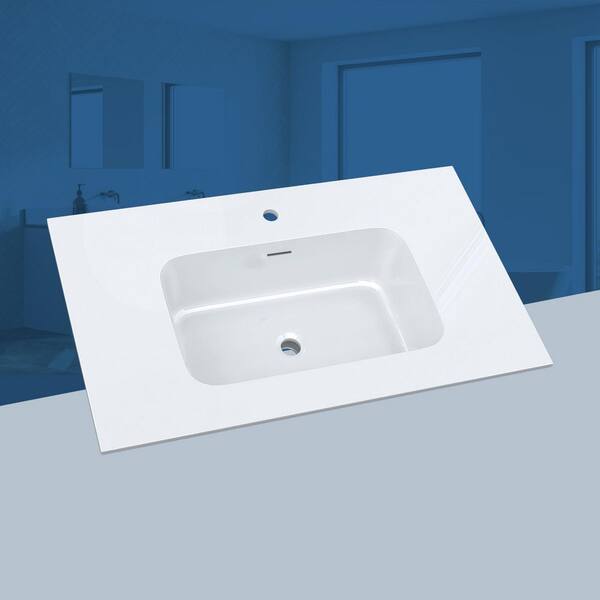 36 in. W x 22 in. D Rectangular Single Sink Bathroom Vanity Top White Solid Surface Resin Vanity Top in Glossy White