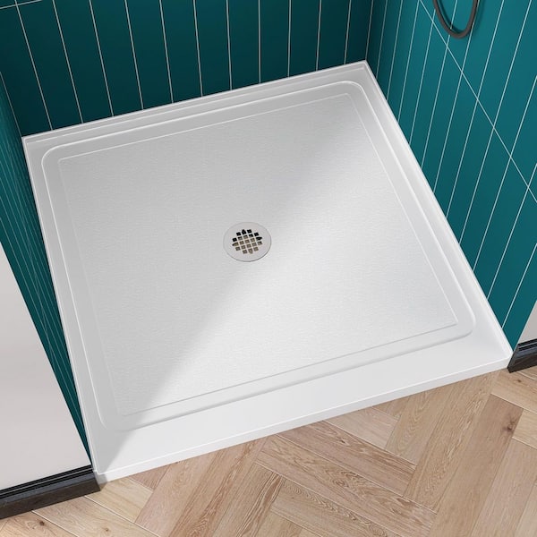 38 in. x 38 in. Acrylic Single Threshold Shower Pan Alcove Floor Rectangular Shower Pan Base with Center Drain in White