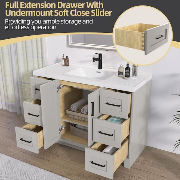 48 in. W x 22 in. D x 36 in. H Bathroom Vanity Single Sink Freestanding Bath Vanity Cabinet in Gray with White Resin Top