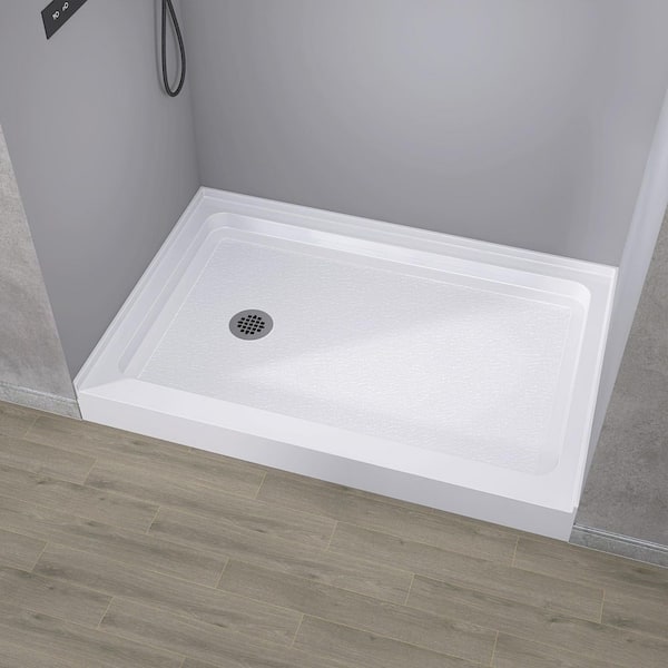 48 in. x 32 in. Acrylic Single Threshold Shower Pan Alcove Floor Rectangular Shower Pan Base with Left Drain in White