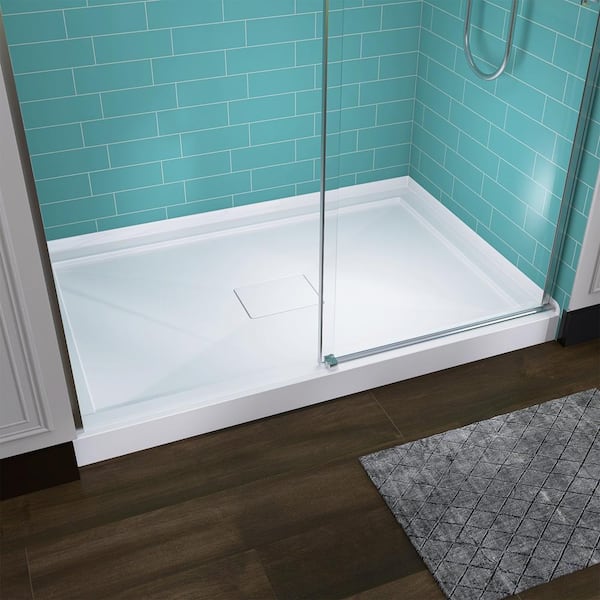 48 in. x 32 in. Single Threshold Acrylic Shower Base Alcove Floor Shower Pan Base with Center Drain in White and Cover