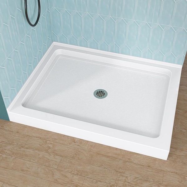 48 in. x 36 in. Acrylic Double Threshold Shower Base Corner Floor Rectangular Shower Pan Base with Center Drain in White