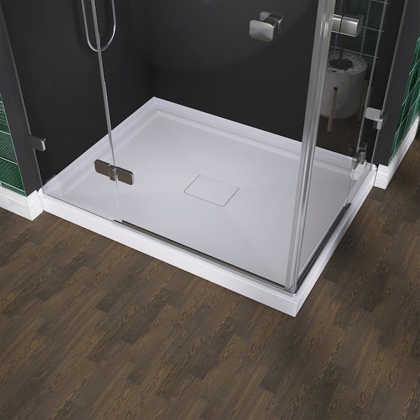 48 in. x 36 in. Double Threshold Acrylic Shower Pan Corner Shower Pan Base with Center Drain and Magnetic Cover in White