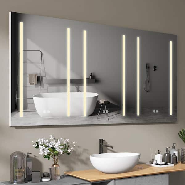 60 in. W x 30 in. H Recessed or Surface Mount Rectangular Aluminum LED Medicine Cabinet White Bathroom with Mirror