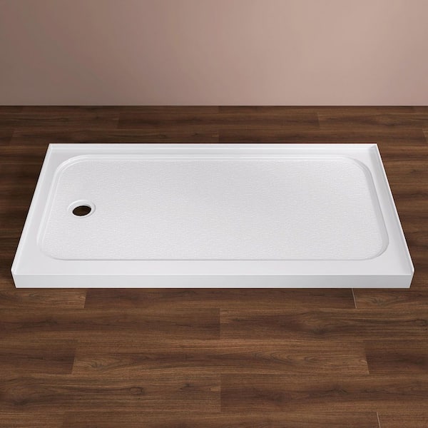 60 in. x 32 in. Acrylic Single Threshold Shower Pan Alcove Floor Rectangular Shower Pan Base with Left Drain in White