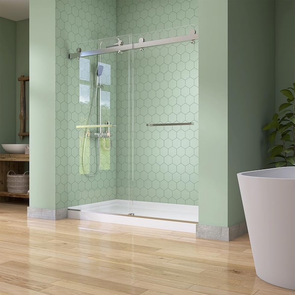 60 in. x 32 in. Single Threshold Acrylic Shower Base Alcove Floor Shower Pan Base with Left Drain in White and Cover