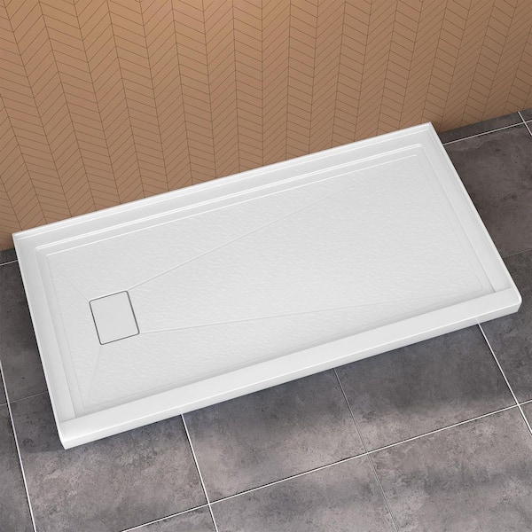 72 in. L x 36 in. W Acrylic Single Threshold Alcove Floor Rectangular Shower Pan Base with Left Drain in White