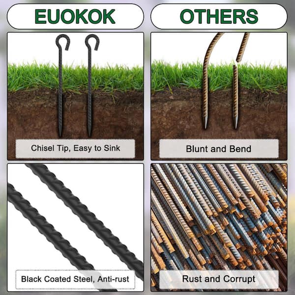 1.2 in. Diameter x 24 in. Metal Rebar Stakes with Loop for Walkway Fence Trampoline Outdoor Camping, Black (6-Pack)