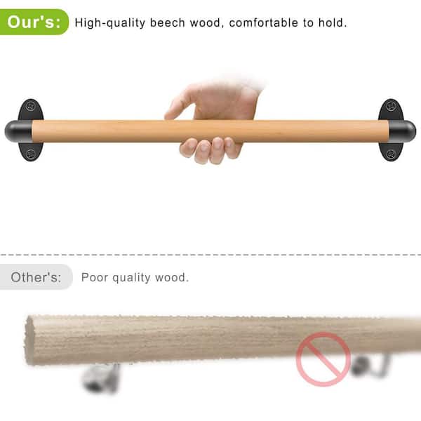 1.3 in. x 36 in. Wood Handrail Indoor Stairs Handrail with Sturdy Metal Barckets for Elderly