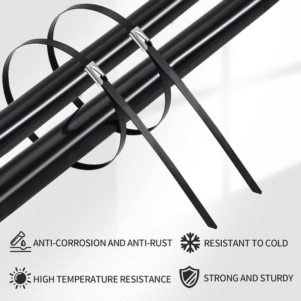 11.8 in. 304 Stainless Steel Zip Ties for Machinery, Vehicles, Farms, Cables Well as Outdoor Binding, Black (100-Pack)