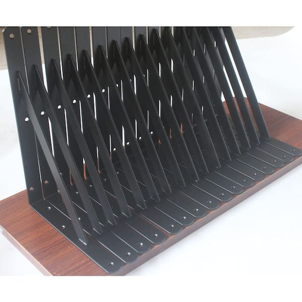 11 in. x 8 in. Black Metal Heavy Duty Shelf L Bracket with Screws (12-Pack)