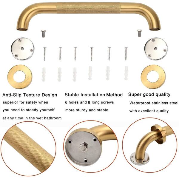 12 in. x 1.25 in. Dia 304-Stainless Steel Anti-Slip Shower Grab Bars for Seniors Elderly, Gold (2-Pack)