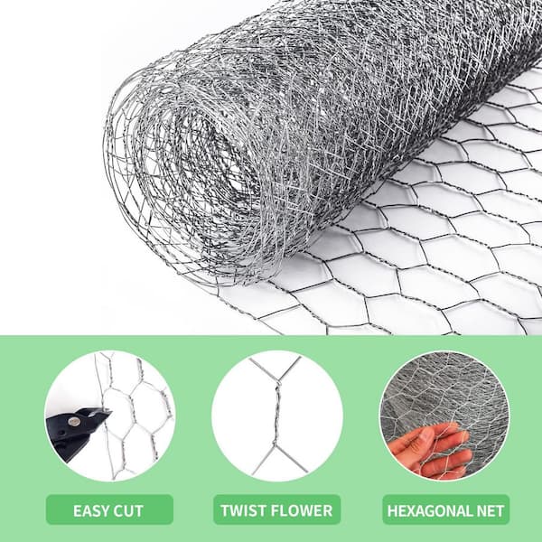 13.7 in. x 236 in. Hexagonal Galvanized Wire Netting for Pet Rabbit Chicken Fencing, Silver