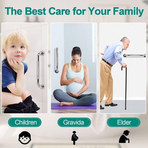 16 in. Stainless Steel Safety Bathroom Shower Grab Bars for Bathtubs and Showers, silvery (2-Pack)