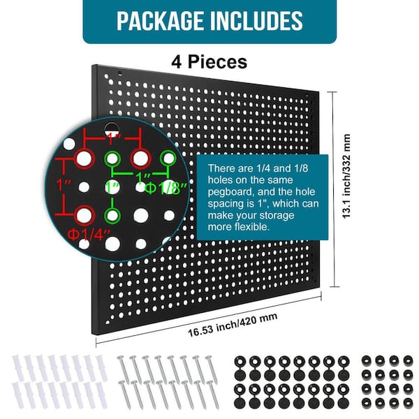 16 in. x 12 in. Heavy Duty Steel Pegboard Garage Organization Panels for Garage Tool Storage, Black (4-Pack)