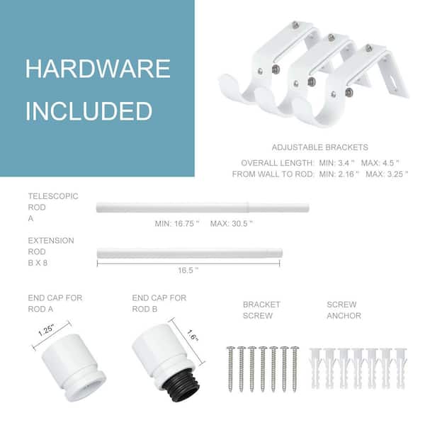 16 to 144 in. Adjustable Length 1 in. Diameter Window Curtain Rod with Aluminium End Cap, White
