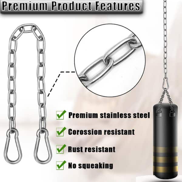 25.6 in. 660 lb. Capacity Hanging Swing Chain with 4 Carabiners for Punching Bags, Swing Chairs, Silver (2-Pack)