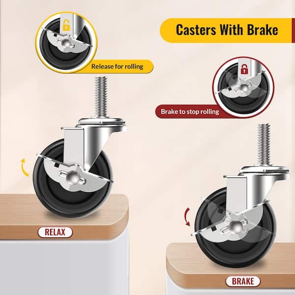 3/8 in. 16 x 1-1/2 in. Heavy Duty Threaded Stem Casters Swivel Casters, Black (4-Pack)