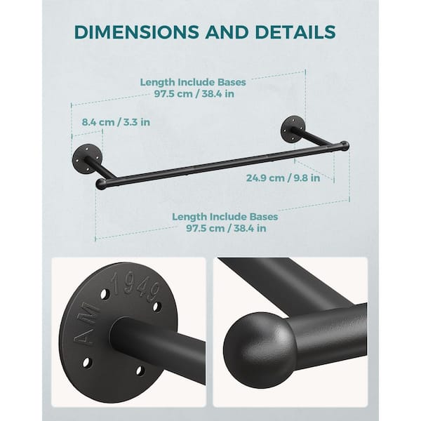 33 in. Industrial Pipe Clothing Rack, Multi-Purpose Hanging Rod for Laundry, Bedroom and Closet Storage, Black (1-Pack)