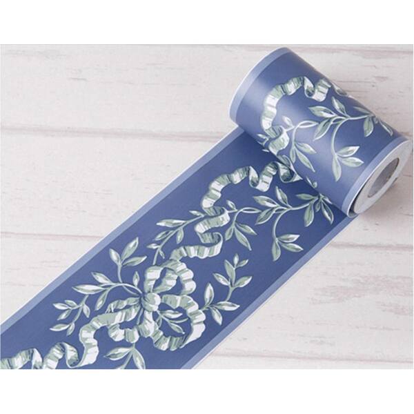 4.2 in. x 32.5 ft. PVC Blue Floral Wall Border Peel Drywall for Bathroom Living Room Kitchen (1-Pack)