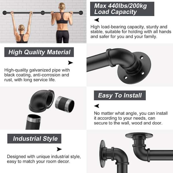 4 ft. Industrial Stair Railing Wall Mount Staircase Handrail for Outdoor Indoor Stairs Porch, Black