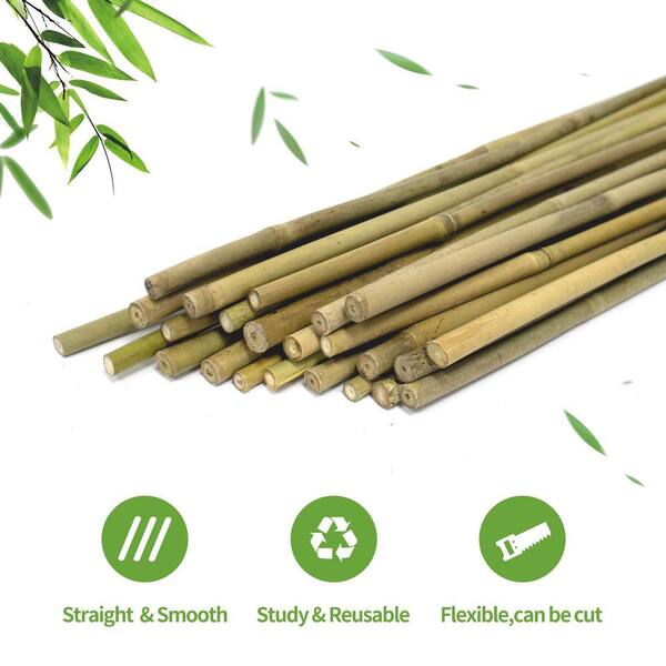 4 ft. Natural Bamboo Plant Stakes with Twist Ties for Tomatoes Beans Flowers Potted Plants Climbing Plants (25-Pack)