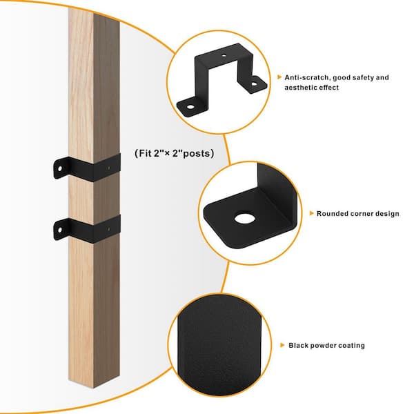 4 in. Deck Fence Tie for 2 in. x 2 in. Post, U-Shaped Bracket for Pipes, Balcony Stairs Railing, Black (4-Pack)