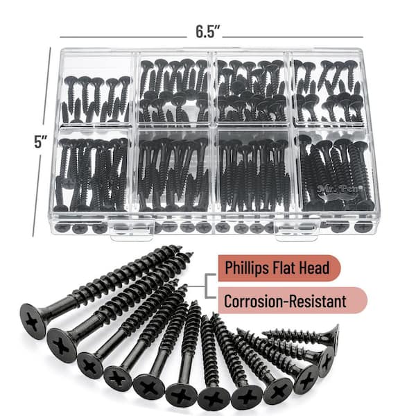 6-Sizes 152-Piece Phillips Tips Wood Screws Assortment Kit, Black (2 in. 1-1/2 in. 1-1/4 in. 1 in. 3/4 in. 1/2 in.)