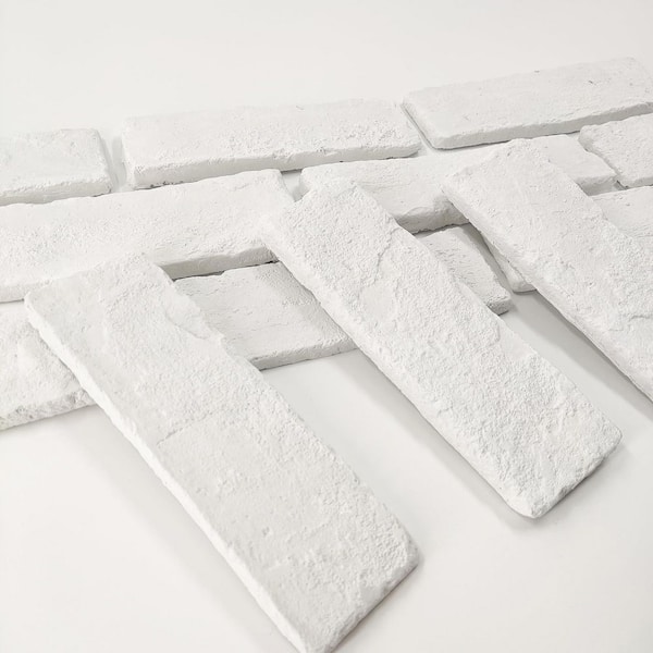 7.9 in. x 2.4 in. x 0.5 in. White Gypsum Thin Brick Veneers for Kitchen Tailboards, Fireplaces, Living Rooms (20-Pack)