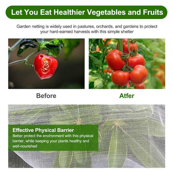 8 ft. x 25 ft. White Durable Garden Netting for Vegetables Fruits and Flowers Growing