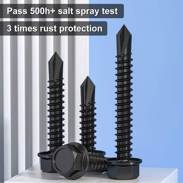 Stainless Steel Self Drilling Screws Assortment Kit, with Hex Washer Head for Metal, Wood and Plastic, Black (150-Pack)