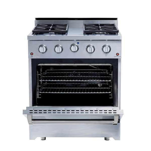 30 in. 4-Burner Liquid Propane Gas Range in Stainless Steel with Convection Oven