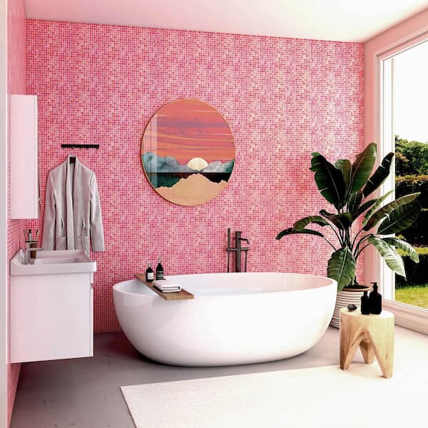 Nacreous 4" x 6" Glossy Punch Pink Glass Mosaic Uniform square Wall and Floor Sample Tile 0.13 sq. ft./Piece (1-Pack)