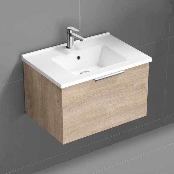 Bodrum 25.59 in. W x 17.72 in. D x 16.14 in. H Modern Bathroom Vanity in Brown Oak With White Ceramic Top