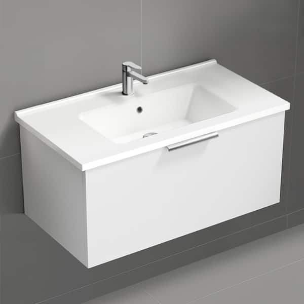 Bodrum 33.46 in. W x 17.72 in. D x 16.14 in. H Modern Bathroom Vanity in Glossy White With White Ceramic Top
