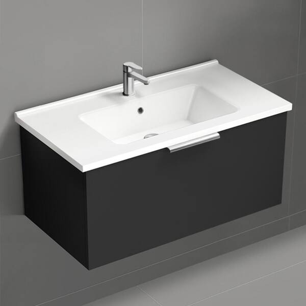 Bodrum 33.46 in. W x 17.72 in. D x 16.14 in. H Modern Bathroom Vanity in Matte Black With White Ceramic Top