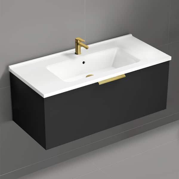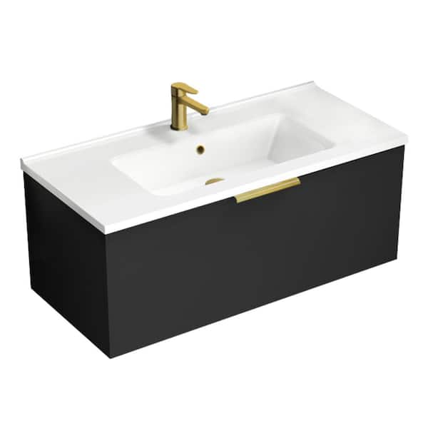 Bodrum 39.37 in. W x 17.72 in. D x 16.14 in. H Modern Bathroom Vanity in Matte Black With White Ceramic Top