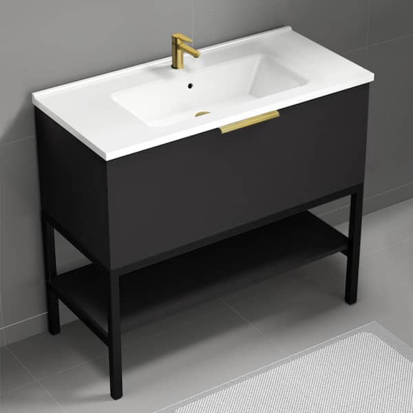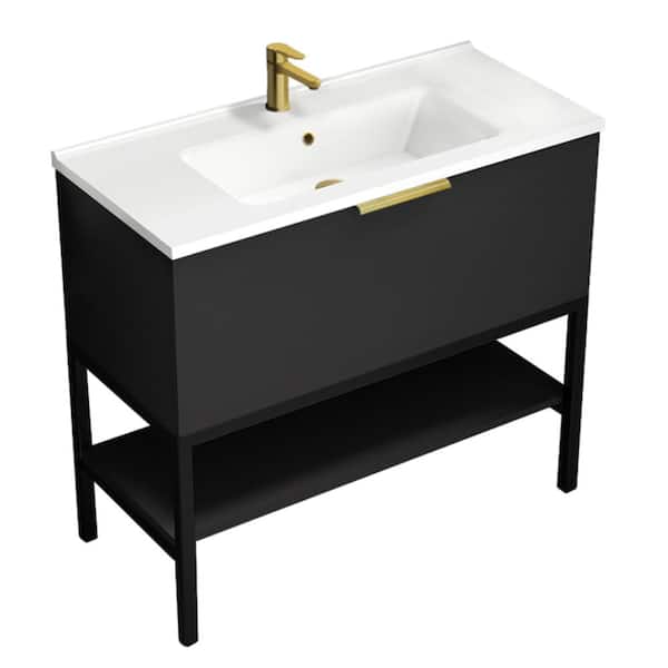 Bodrum 39.37 in. W x 17.72 in. D x 35.04 in. H Modern Bathroom Vanity in Matte Black With White Ceramic Top