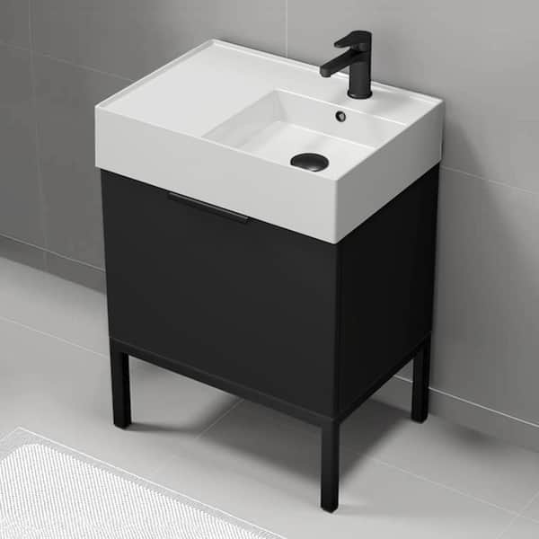 Derin 23.6 in. W x 17.3 in. D x 34.64 in. H Modern Bathroom Vanity in Matte Black With White Ceramic Top