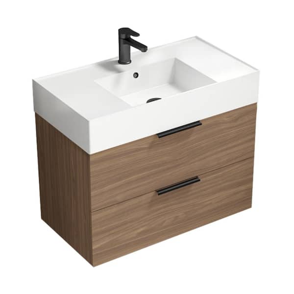 Derin 31.89 in. W x 17.32 in. D x 25.2 in. H Modern Bathroom Vanity in Walnut With White Ceramic Top