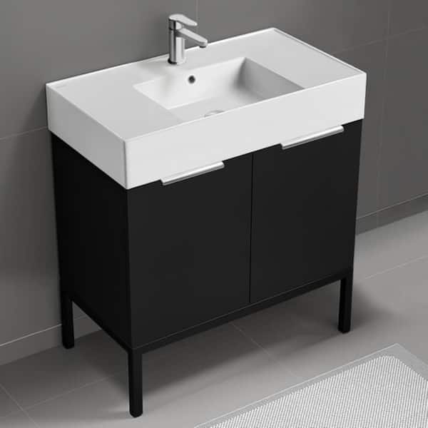 Derin 31.9 in. W x 17.3 in. D x 34.65 in. H Modern Bathroom Vanity in Matte Black With White Ceramic Top