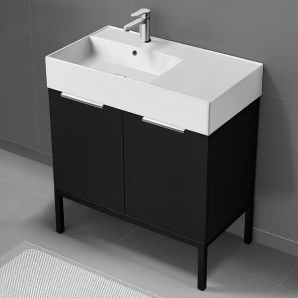 Derin 31.9 in. W x 17.3 in. D x 34.65 in. H Modern Bathroom Vanity in Matte Black With White Ceramic Top