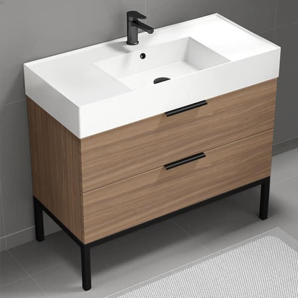 Derin 39.53 in. W x 18.11 in. D x 34.65 in. H Modern Bathroom Vanity in Walnut With White Ceramic Top