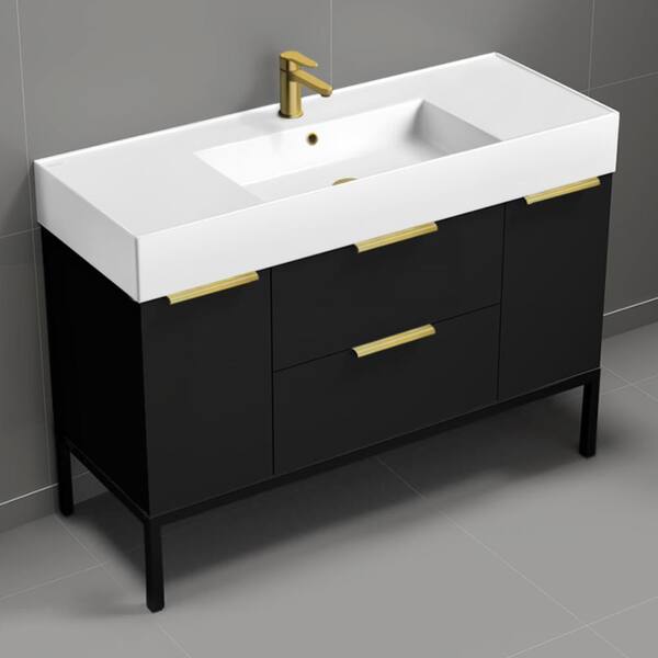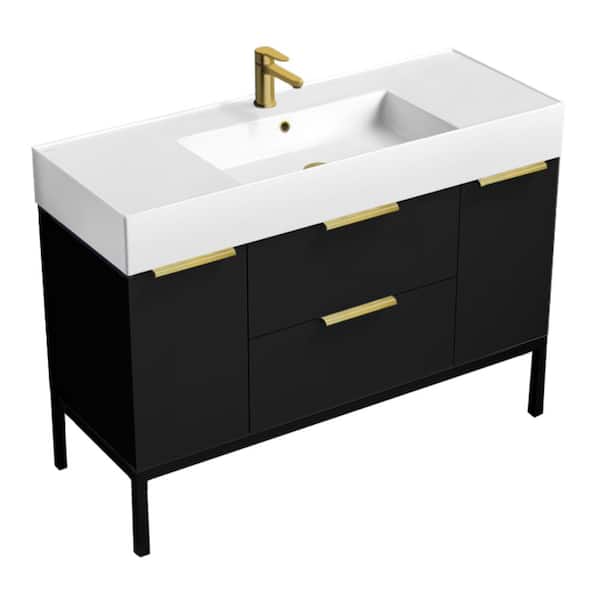 Derin 47.6 in. W x 18.1 in. D x 34.65 in. H Modern Bathroom Vanity in Matte Black With White Ceramic Top