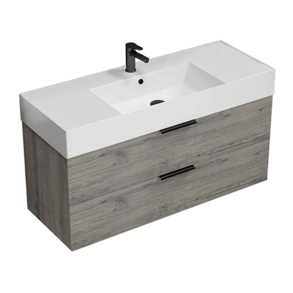 Derin 47.64 in. W x 18.11 in. D x 25.2 in. H Modern Bathroom Vanity in Grey Oak With White Ceramic Top