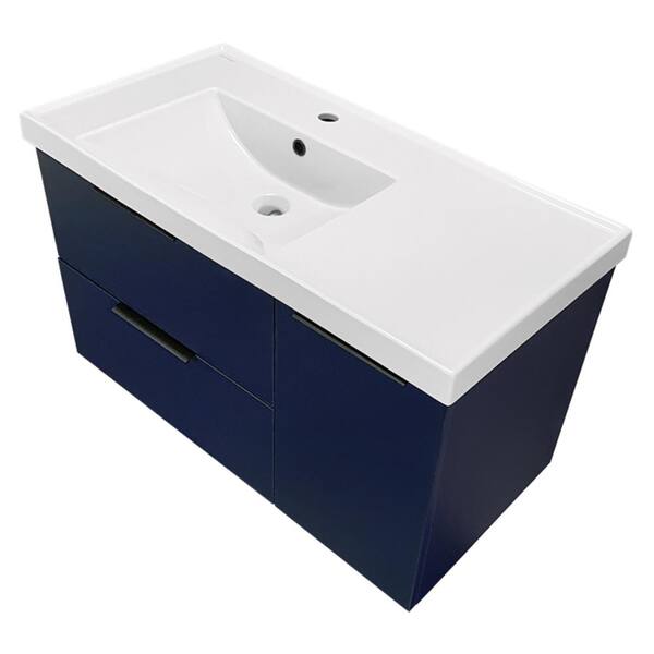 Lisbon 36.2 in. W x 18.5 in. D x 21.65 in. H Modern Bathroom Vanity in Night Blue With White Ceramic Top