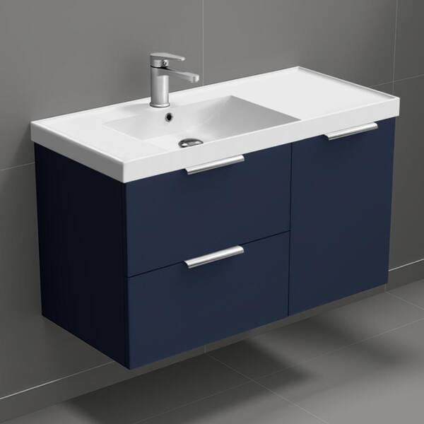 Lisbon 36.2 in. W x 18.5 in. D x 21.65 in. H Modern Bathroom Vanity in Night Blue With White Ceramic Top