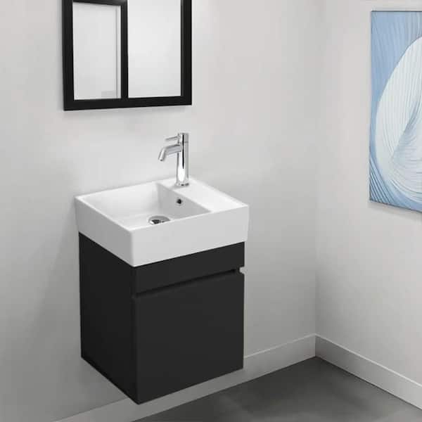 Mini 15.7 in. W x 11.8 in. D x 22.8 in. H Modern Wall Mounted Bathroom Vanity in Matte Black with White Ceramic Top