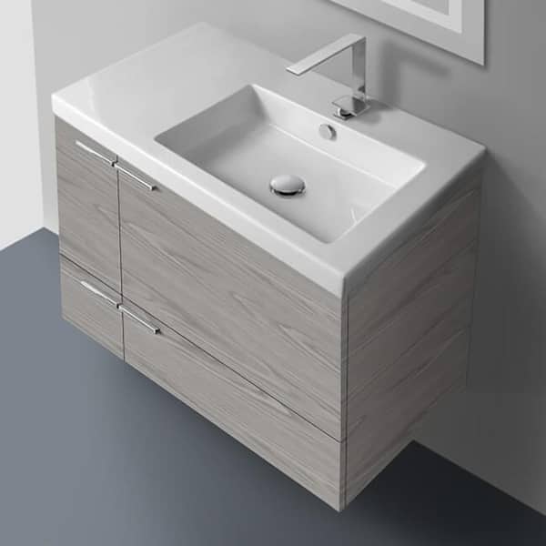New Space 31 in. W x 17.7 in. D x 23.8 in. H Bathroom Vanity in Grey Walnut with Ceramic Vanity Top and Basin in White
