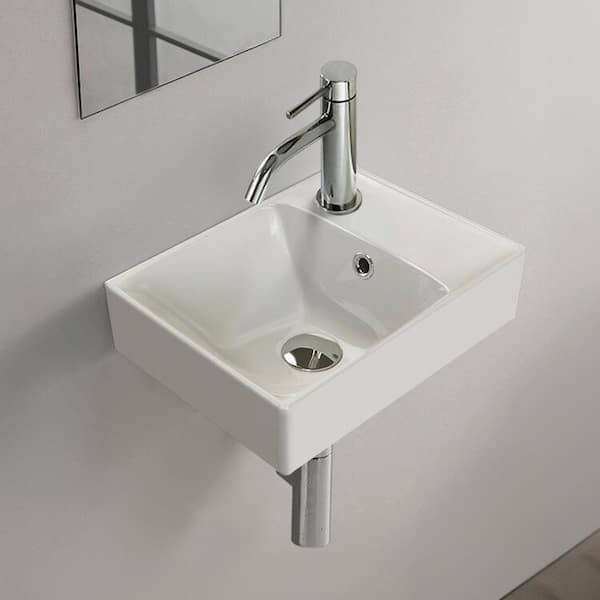 Sharp Modern White Ceramic Rectangular Wall Mounted Sink with Single Faucet Hole